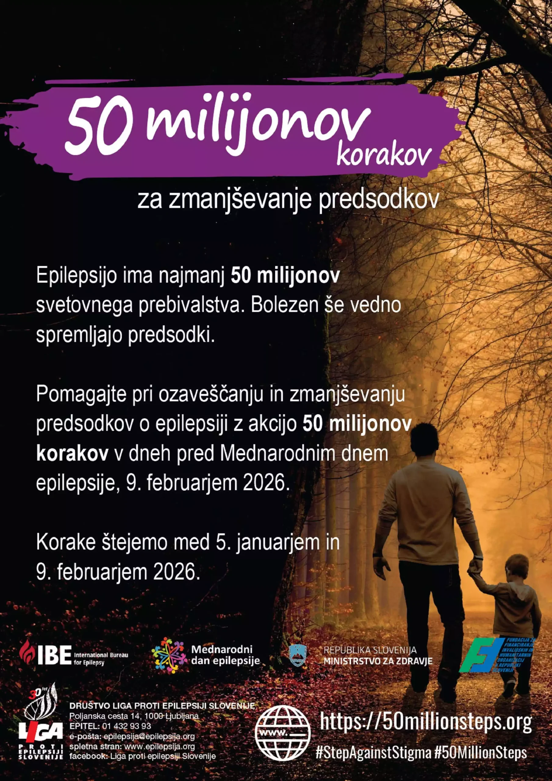 Pomagajte pri ozaveščanju in zmanjševanju predsodkov o epilepsiji z akcijo 50 milijonov korakov v dneh pred Mednarodnim dnem epilepsije, 9. februarjem 2026.
